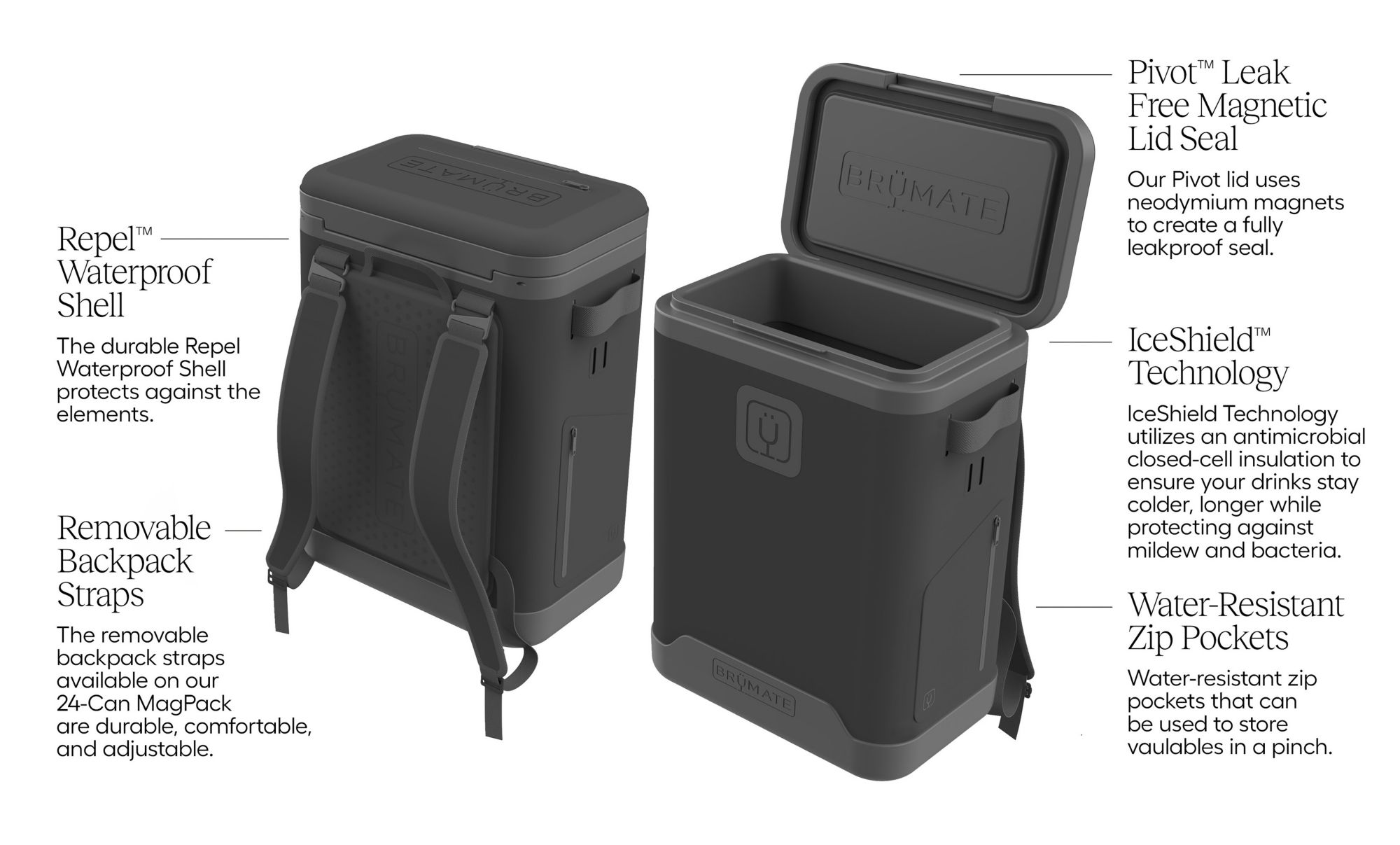 - Pivot™ Lid uses neodymium magnets to create a fully leakproof seal