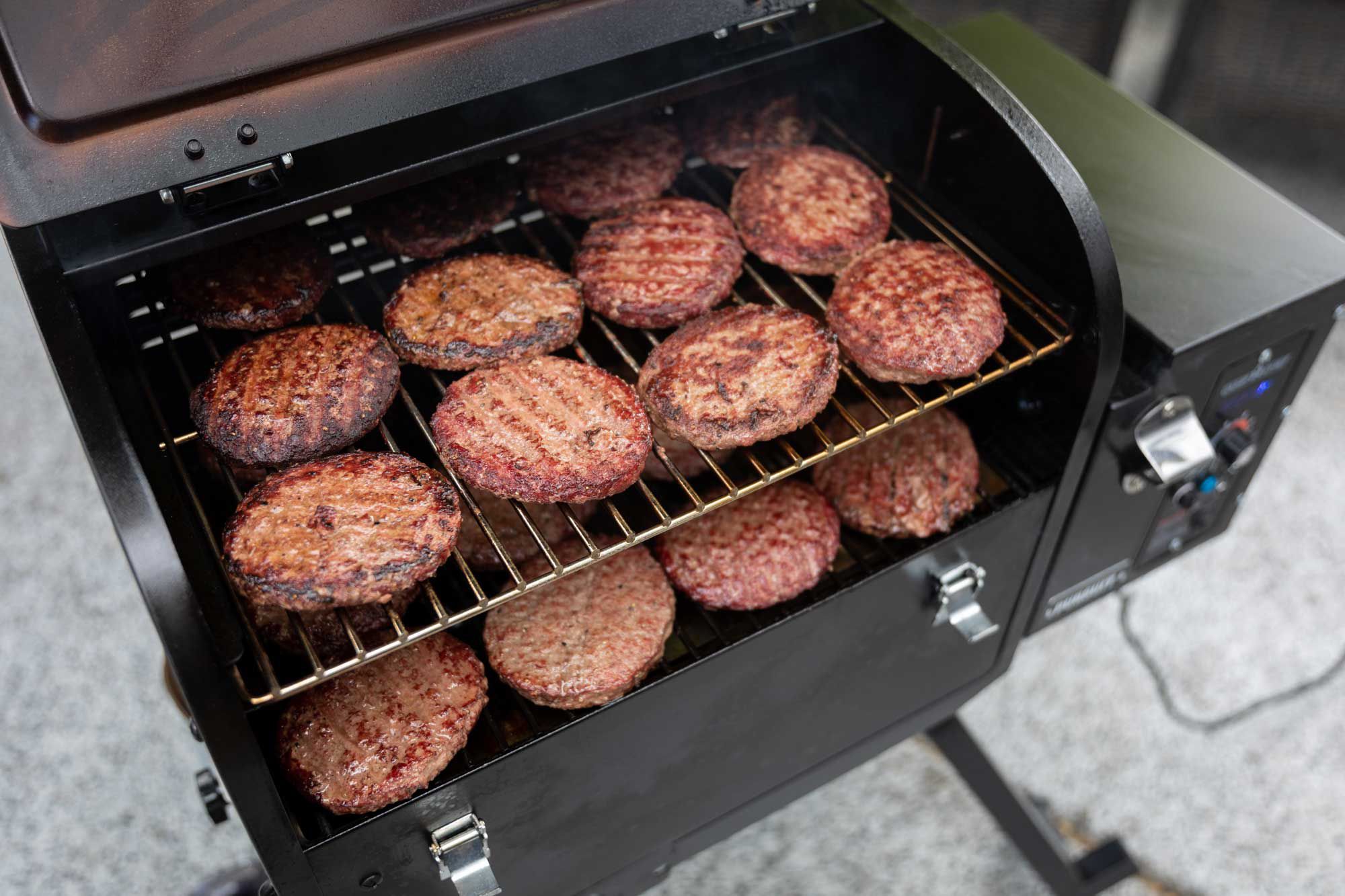 • Fits up to (24) 0.25 lb. burgers or (16) 0.5 lb. burgers, (1) 12-inch pizza, (4) chickens, (4) racks of ribs, and (4) tri-tips