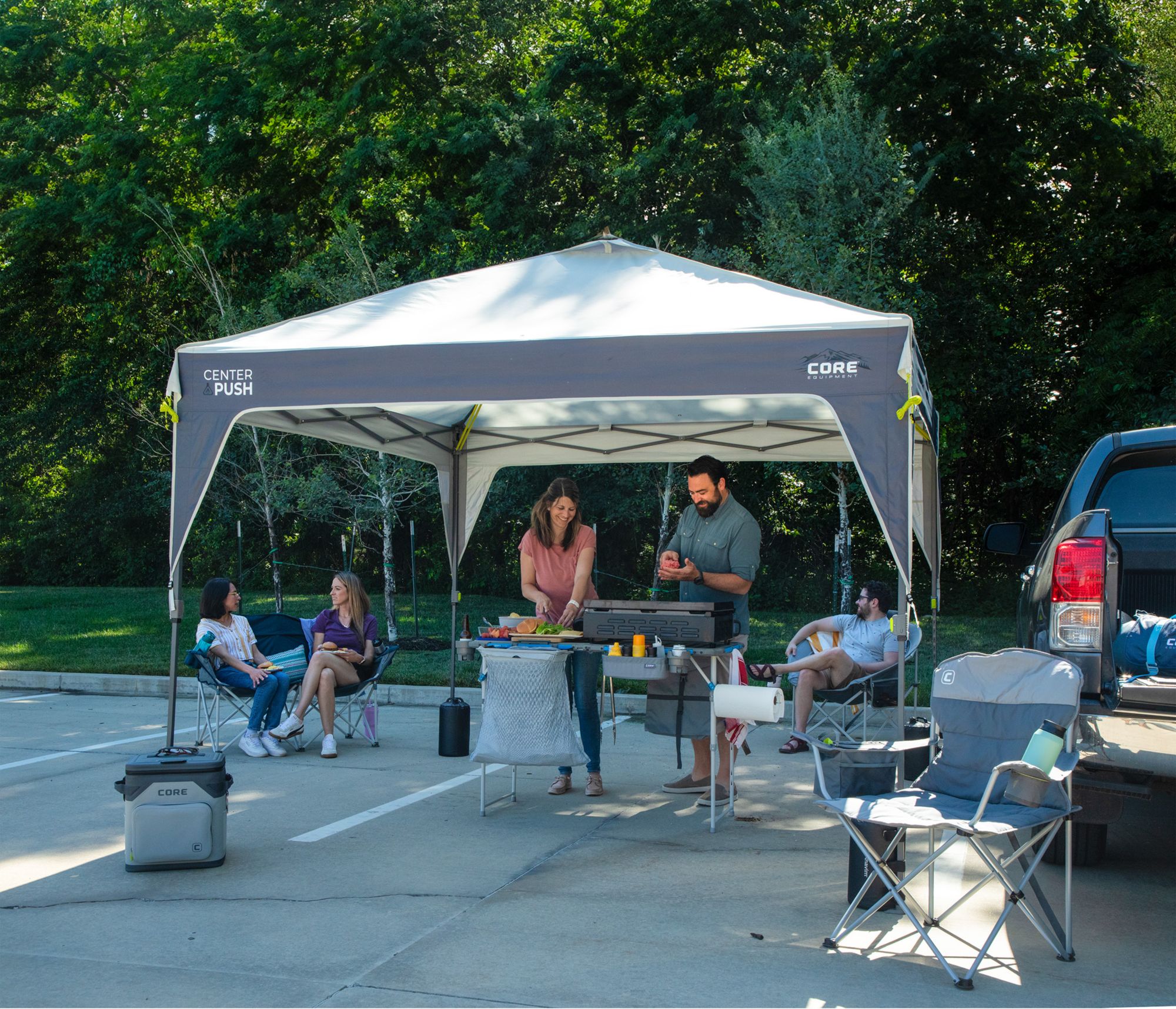 - CENTER PUSH™ TECHNOLOGY: Easily set up the canopy in 2 minutes! Core’s Center Push Technology enables quick opening and closing from the center with an extended handle