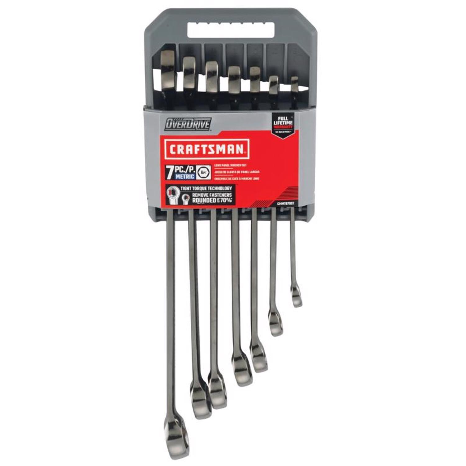 Finish your to-do list with ease using the versatile OVERDRIVE MM Wrench Set (7 pc). With both open-end and box-end options, this 7-piece MM wrench set offers flexibility for various applications from fixing your car to completing home projects. With the leverage required for peak this reliable wrench set gets the job done. Open end design box end can remove fasteners that are rounded to 50% INCREASED LEVERAGE – Loosen stubborn fasteners with a long panel design that provides increased leverage vs. CRAFTSMAN raised panel wrenches.