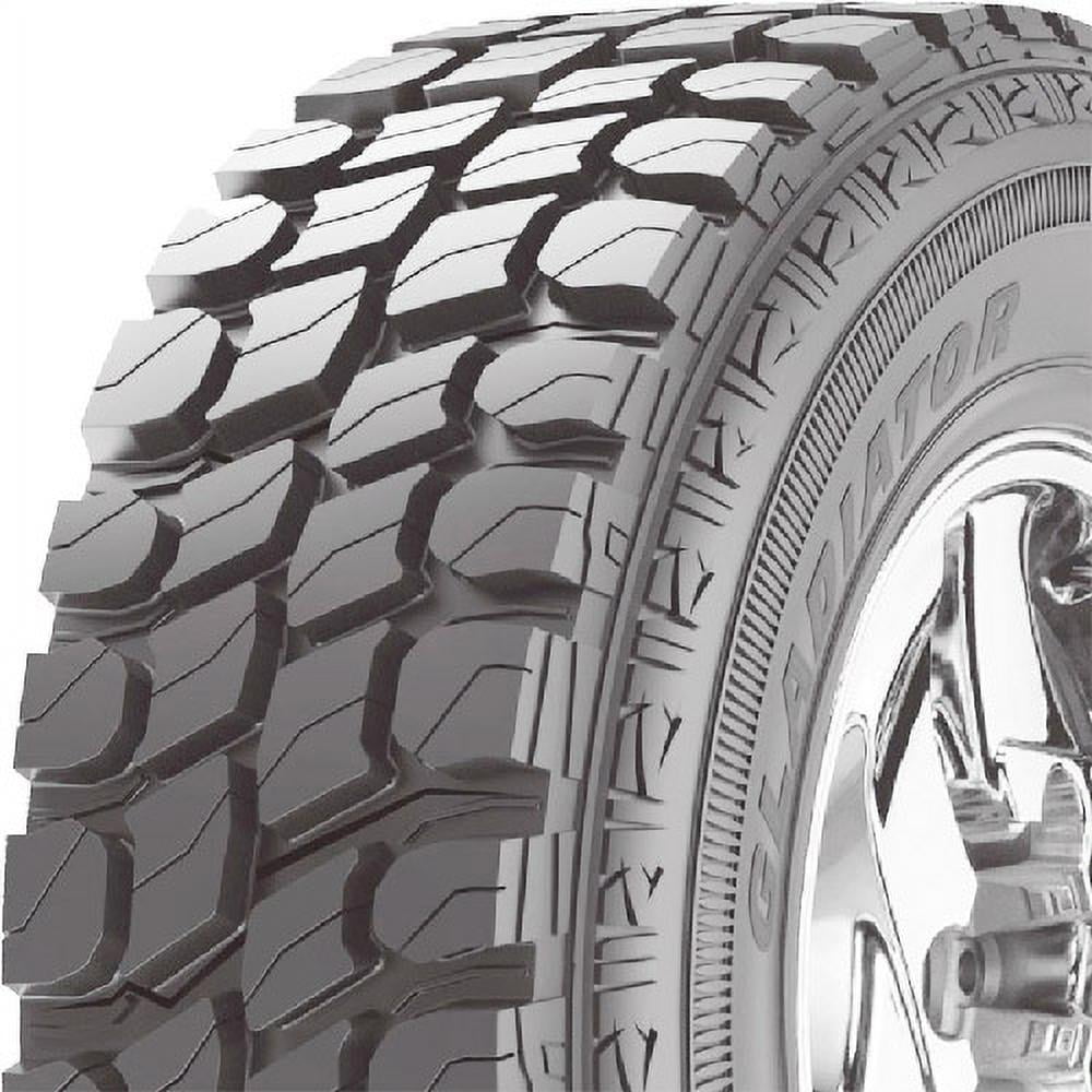 Gladiator QR900-MT LT37X12.50R20 126Q EOVERVIEWGladiator’s QR900-MT is a mud terrain tire that’s designed for use on Jeeps, light trucks, and SUVs. An aggressive tread pattern boosts traction and performance in mud, dirt, and other off-road terrains, and the QR900-MT’s steel belted construction boosts strength and durability for a higher load carrying capacity and longer tread life. Designed for use on Jeeps, light trucks, and SUVs Built with an aggressive tread pattern that enhances traction and performance in mud, dirt, rocks, and other tough off-road terrains Self-cleaning tread design forces out rocks, stones, mud, and other design for consistent traction and to protect the casing from damage Steel-belted construction for durability and performance M&S rated info: Specifications Features Wheel Not Included Tire Size LT37X12.50R20 Vehicle Type Light Truck Tire Width 37 Wheel Diameter 20 Tire Season All-Season Tire Speed Rating Q Tire Type Light Truck & SUV Tires Tire Load Index 126 Tread Depth 18/32 Brand Gladiator Model QR900 MT Manufacturer Part Number 1932250372 Manufacturer GLADIATOR TIRES Assembled Product Dimensions (L x W x H) 37.00 x 37.00 x 13.00 Inches