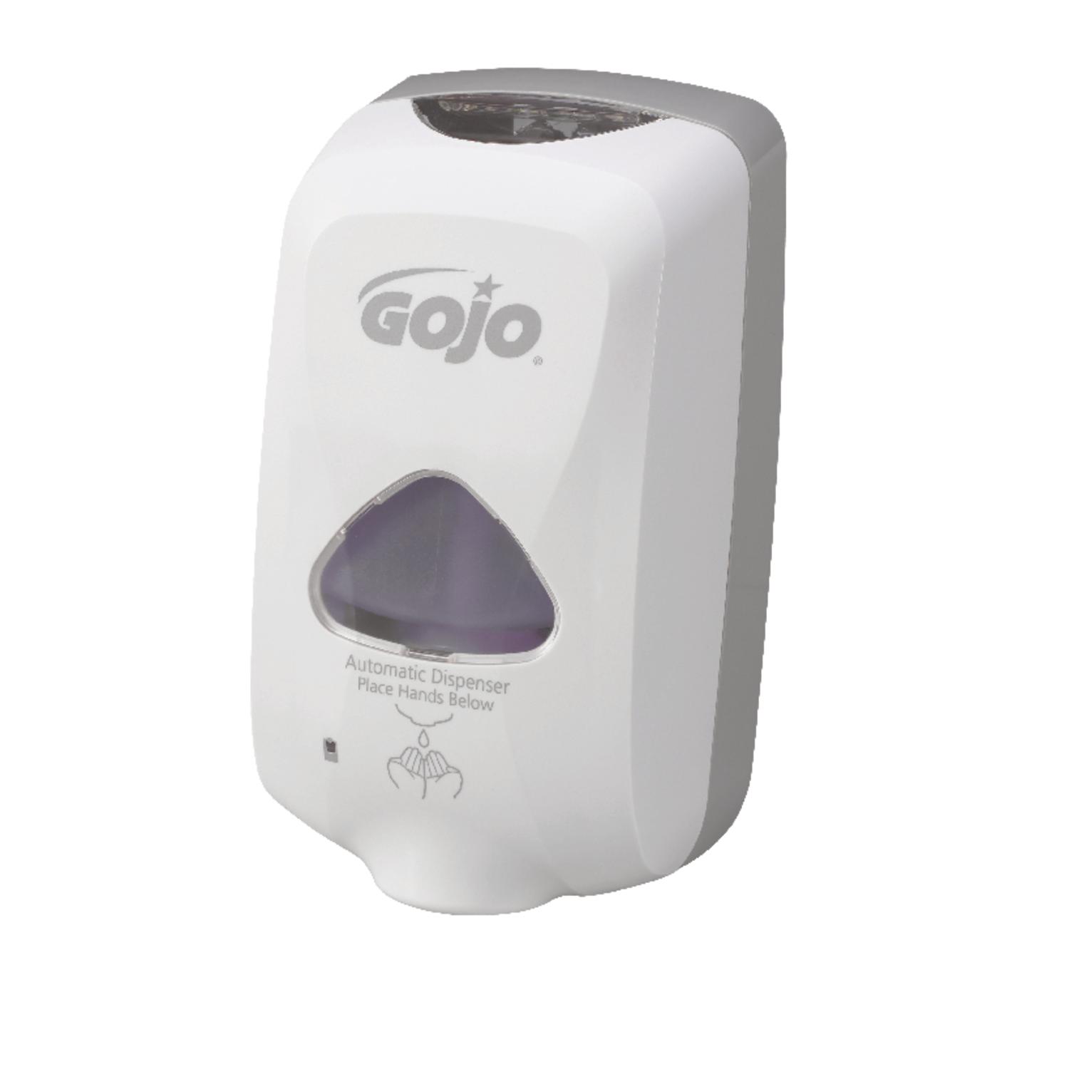 GOJO TFX Dispenser 2740-12 Show you care about the well-being of the people in your facility with the GOJO TFX Touch-Free Dispenser for GOJO TFX Foam Soap Refills. Built on over 65 years of dispenser engineering experience, the durable GOJO TFX Touch-Free Dispenser helps you keep your restrooms clean. With millions of units installed, across billions of uses, TFX dispensers and refills are designed to be easy to maintain and are proven reliable. Simply place your hand under the dispenser, and the perfect amount of foam soap appears. The convenient window shows when it is time for a new refill. The TFX Soap Dispenser works with GOJO TFX Foam Soap Refills. Each 1200 mL refill holds up to 2000 uses of soap, which minimizes changeouts. Refills are SANITARY SEALED with a fresh dispensing valve to lock out germs. GOJO self-lathering foam soap rinses cleaner than liquid soap without leaving drips or messes in the sink, reducing the time to clean sink areas. GOJO soap varieties include: GOJO Premium Foam Handwash with Skin Conditioners (5361-02), GOJO Green Certified Foam Hand Cleaner 5665-02, GOJO Premium Foam Antibacterial Hand Wash 5362-02, GOJO E2 Foam Sanitizing Soap (5364-02) and GOJO E2 Foam Handwash with PCMX 5369-02. Case Includes: 1 – GOJO TFX Touch-Free Soap Dispenser, Dove Grey, adhesive mounting tape. Dispenser requires 3 C Alkaline batteries that are not included. Dispenser dimensions are: 10.58 h x 4.09 w x 6.0 l. TFX Soap refills are sold separately 5361-02, 5665-02, 5362-02, 5364-02, 5369-02.GOJO Industries is a purpose-driven Family Enterprise committed to making easier, more effective and gentle for us to clean our hands.