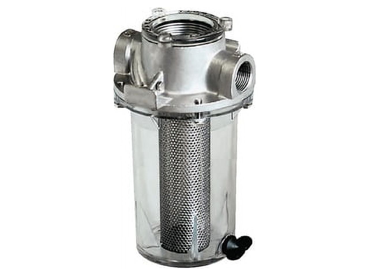 See-through screw-on strainer cap allows easy, no-tools maintenance