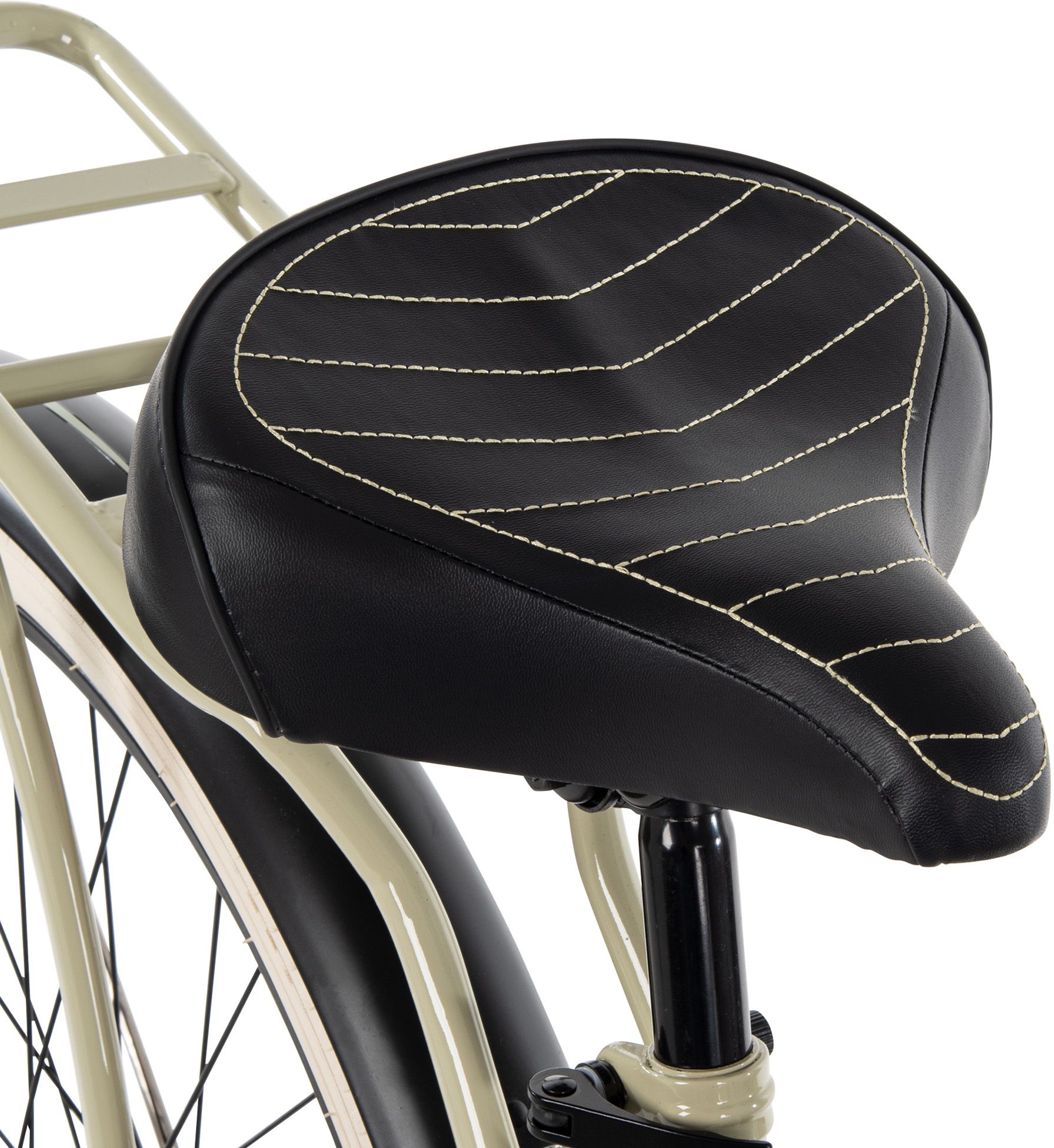 - Padded spring saddle features embroidery accents for a sleek look