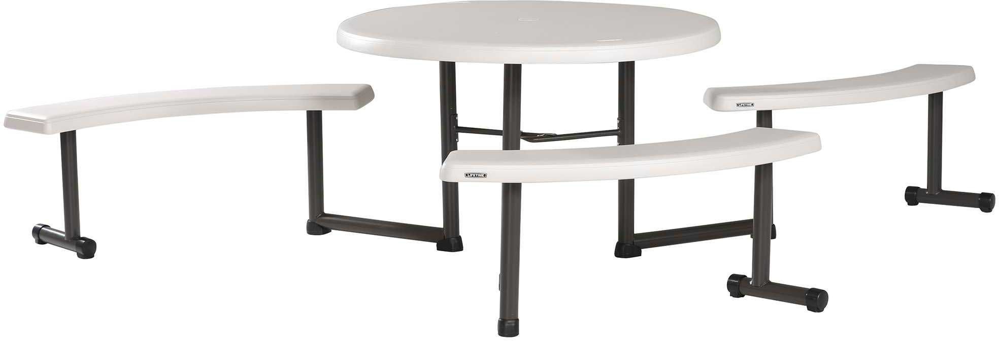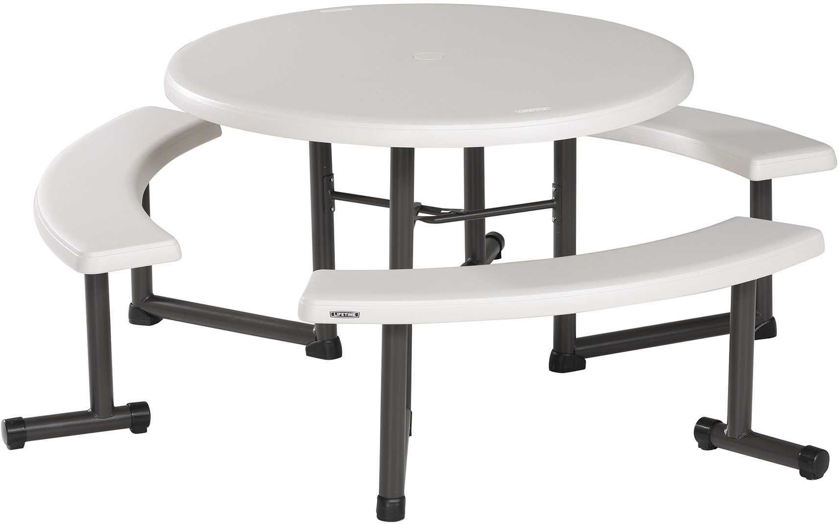 The Lifetime 44-Inch Round Picnic Table gives you that perfect extra outdoor eating space you’ve always wanted. Constructed of UV-protected high-density polyethylene and powder-coated steel, our picnic tables are weather and rust resistant, and will not fade, crack, chip or peel. Stronger and more durable than wood, they are low-maintenance, stain resistant and easy to clean.