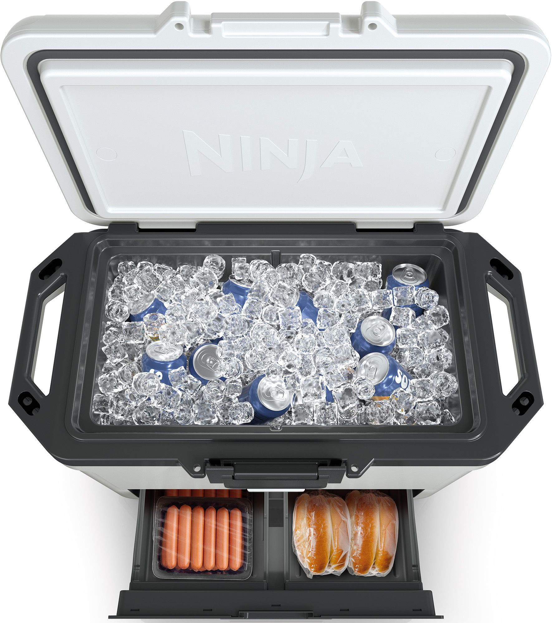 Meet the Ninja FrostVault™ – the cooler with premium ice retention and fridge-temp dry storage. With FrostVault™ technology, cold transfers into the Dry Zone to keep food cool, dry, and separate at food-safe temperatures (under 40° F) for days.