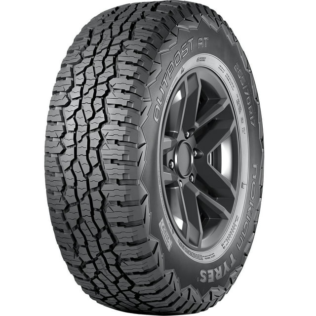 Nokian Outpost AT LT265/60R20 121/118S E OVERVIEW The Outpost AT from Nokian is an all-terrain, all-weather tire for light trucks and SUVs that features Aramid Shield Technology within its sidewalls for excellent resistance to punctures, impacts, cuts, chips, and abrasions. Three Peak Mountain Snowflake certified for use in moderate to severe winter weather conditions, the Outpost AT’s Canyon Cuts within the tread enhance grip on unpredictable surfaces while Gravel Guards force rocks, stones, mud, and other unwanted debris out of the tread for consistent traction off-road and to protect the casing from damage. A Triple Pitch Design reduces road noises and vibrations to create a quiet, comfortable ride for drivers and passengers on paved roads, and the Outpost AT’s Driving Safety Indicator within the tread allows drivers quickly check their tread depth so that they know when it’s time to replace their tires. Covered by a 60,000 mile limited manufacture tread life warranty for non-fleet and non-commercial vehicles Three Peak Mountain Snowflake certified for use in moderate to severe winter weather conditions Backed by Nokian’s Pothole Protection Warranty that replaces the tire at no cost if a road hazard damages the tire beyond repair Reinforced construction increases load carrying capacity so that drivers can confidently haul and tow materials, boats, trailers, and more Tread block bridging and slope supports help to promote a longer tread life by reducing uneven wear Aggressive shoulder notches enhance traction and grip on- and off-road Size: LT265/60R20 Load Range: E Product May Vary From Picture Wheel/Rim Not Included Fits: 2021-23 GMC Sierra 1500 AT4 2013-23 GMC Sierra 2500 HD Denali 2020 Chevrolet Silverado 2500 HD LT 2012-14 Chevrolet Silverado 2500 HD LTZ 2022 Toyota Tundra SR TRD Off-Road 2022 Chevrolet Silverado 1500 LTD LT Trail Boss 2011 GMC Sierra 2500 HD Denali 2012 GMC Sierra 2500 HD SLE 2016-21 Nissan Titan XD Platinum Reserve 2011-14 GMC Sierra 3500 HD Denali 2023 Toyota Tundra 1794 Edition 2023 Toyota Sequoia TRD Off-Road 2023 Nissan Titan XD Platinum Reserve and more – add your vehicle to our fit widget to check info: Specifications Features Size: 265 60R20, Season: All Weather, Performance: All Terrain, Car Type: Light Truck Tire Size 265/60R20 Vehicle Type Light Truck Tire Width 265 Wheel Diameter 20 Inches Warranty Distance 60000 miles Tire Season All-Season Tire Speed Rating S Tire Type Light Truck & SUV Tires, Light Truck Tires Tire Load Index 121 Tire Treadwear Rating 500 Tread Depth 18/32 Brand Nokian Assembled Product Weight 52.9 lb Model Outpost AT T431914 Manufacturer Part Number T431914 Manufacturer Nokian