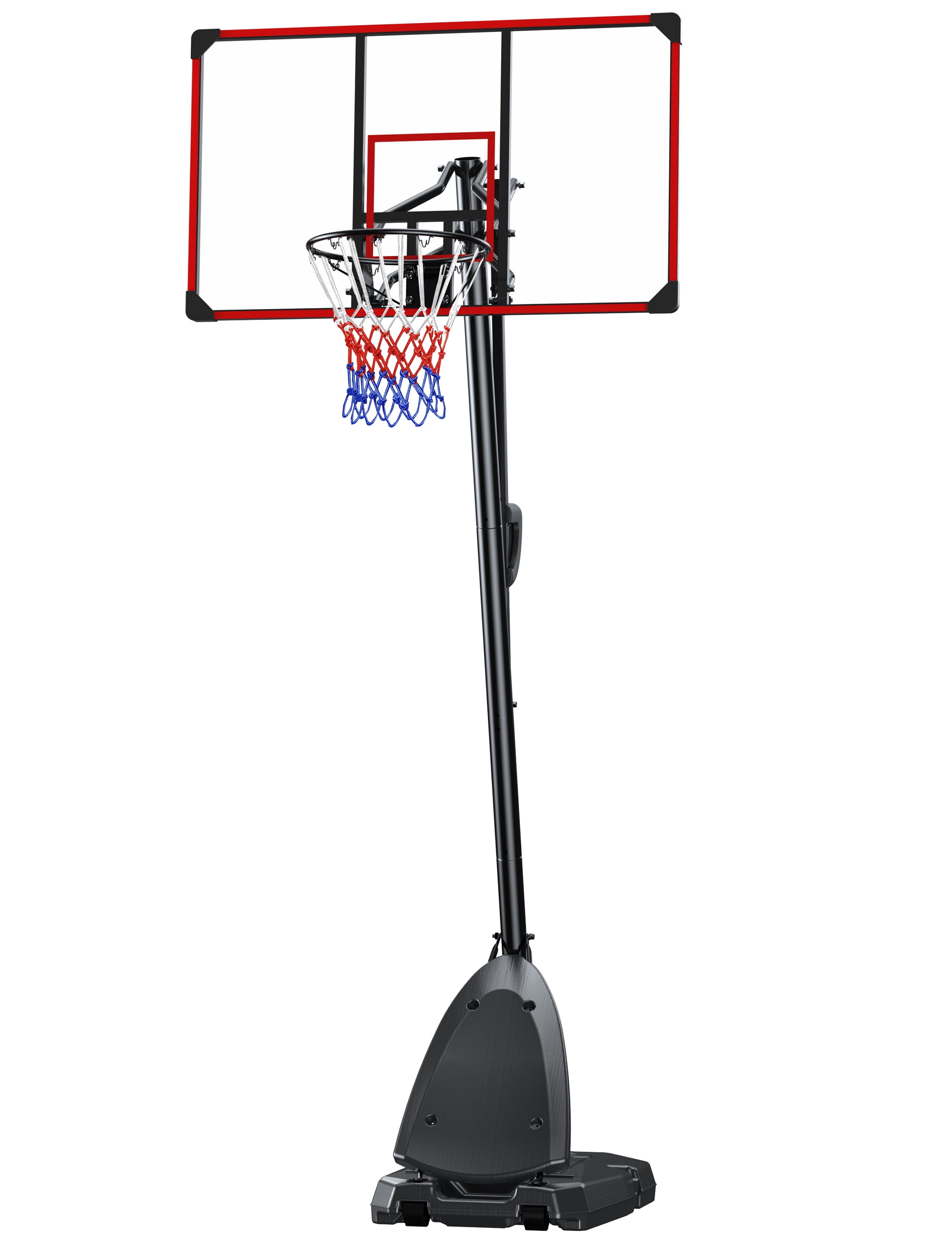 PROFESSIONAL & SHATTERPROOF BACKBOARD – The 16mm thick Q195 steel basket adopts an impact-resistant design with a solid dual-spring damping mechanism mounted to the backboard. The 18-inch diameter basket fits standard size 7 basketballs in official basketball games. Equipped with a 44-inch high-strength windproof transparent PC backboard and a sturdy aluminum alloy frame, it has excellent durability and impact resistance. All-weather nylon mesh is perfect for year-round use.