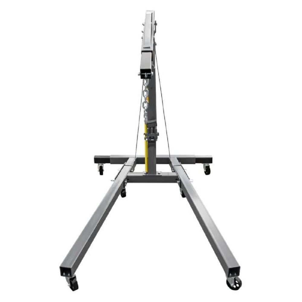 This heavy-duty hydraulic folding engine hoist is perfect for shops that have limited space but still need the pure lifting convenience of a crane. The RSC-2TF 2-ton folding shop crane sports a 1 inch to 93 inch lifting range and features a 4-hole position boom, rugged hydraulic ram, 6-wheel design for added mobility and foldable body. With such a high range, this shop crane can be used to hoist engines whether your vehicle is on the ground or raised on a super-tall car lift. Quick-release ring pins make setup and teardown a snap. Heavy steel construction ensures maximum durability, and the 4-position boom is reinforced, so flex is never an issue. With a powerful, 4,000-lb. shop crane at your disposal, you’ll be better-suited to lift and secure heavy-duty engines than your competition. The impressive portability of the crane is just an added bonus. Its steel casters are robust and safe for shop environments. Safety brakes are built into the front casters to prevent movement while the crane is in action.Designed for shops with limited spaceFolds for easy storageHeavy steel construction for maximum durabilityBoom is reinforced to increase strength and eliminate flexRugged hydraulic cylinderHeavy-duty steel casters for easy positioningFront casters include a safety brake to prevent movementTelescoping boom provides 4 positionsIncludes heavy steel hook with safety latchCA Residents: Prop 65 Warning(s)