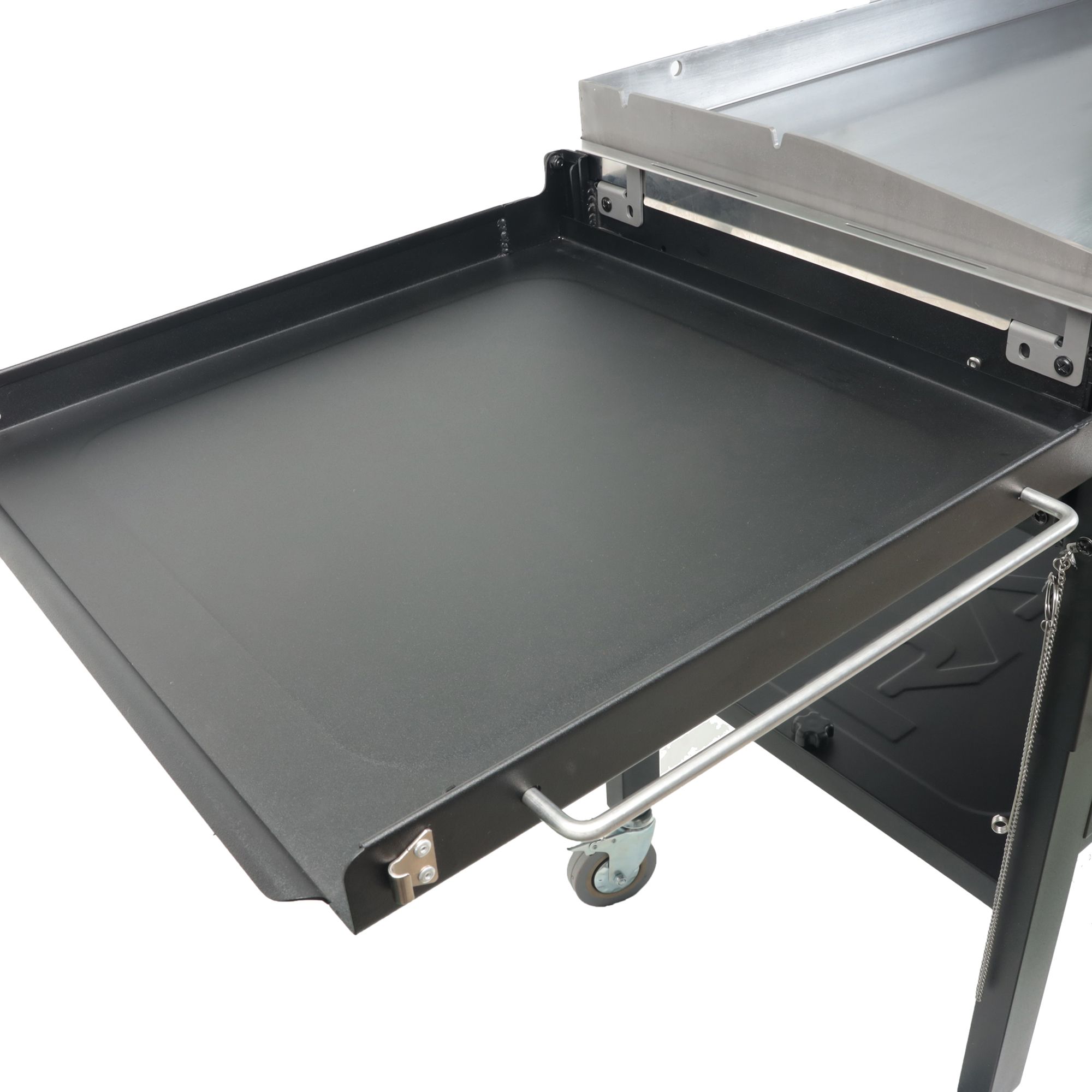 - Durable rolled steel with pre-seasoned griddle top