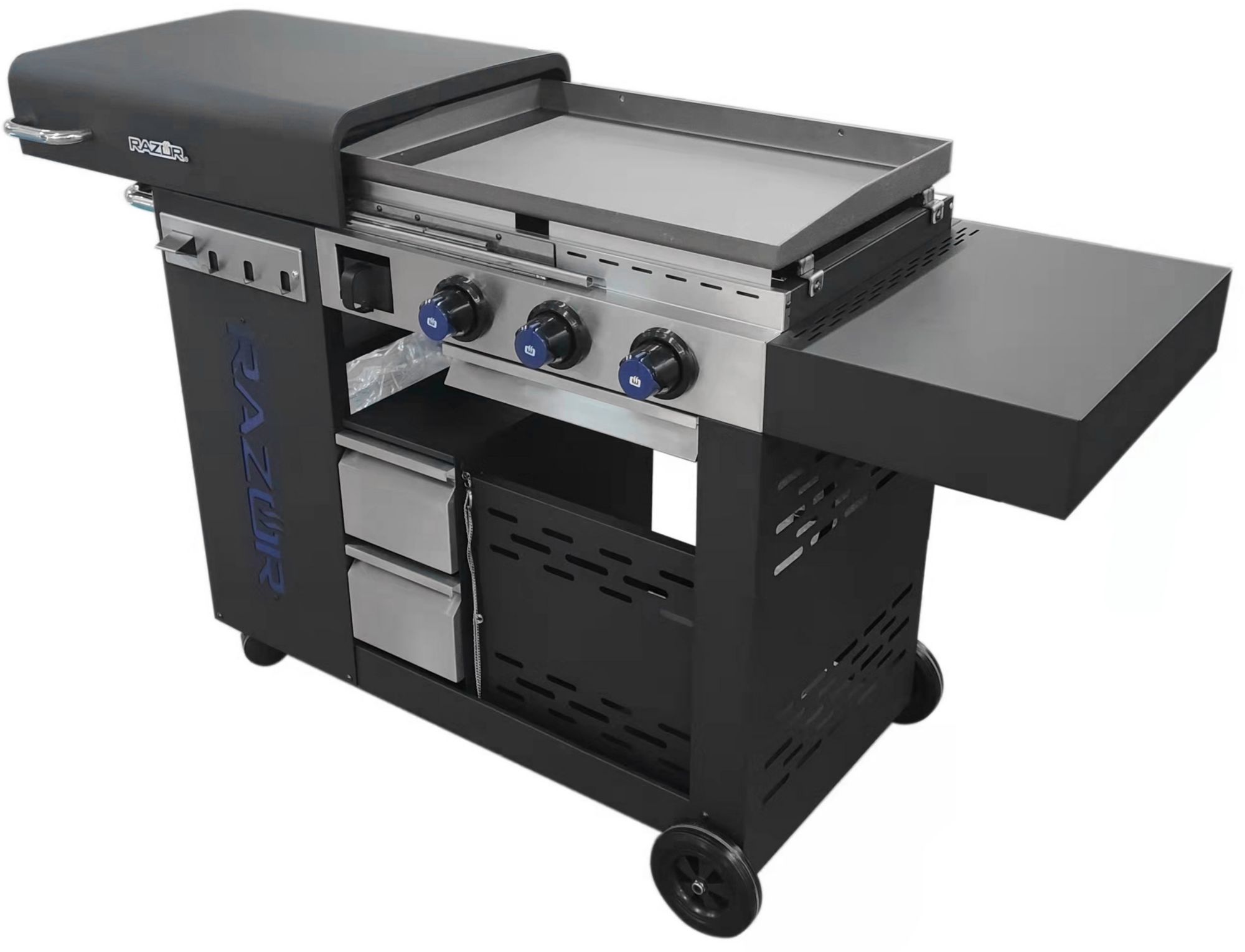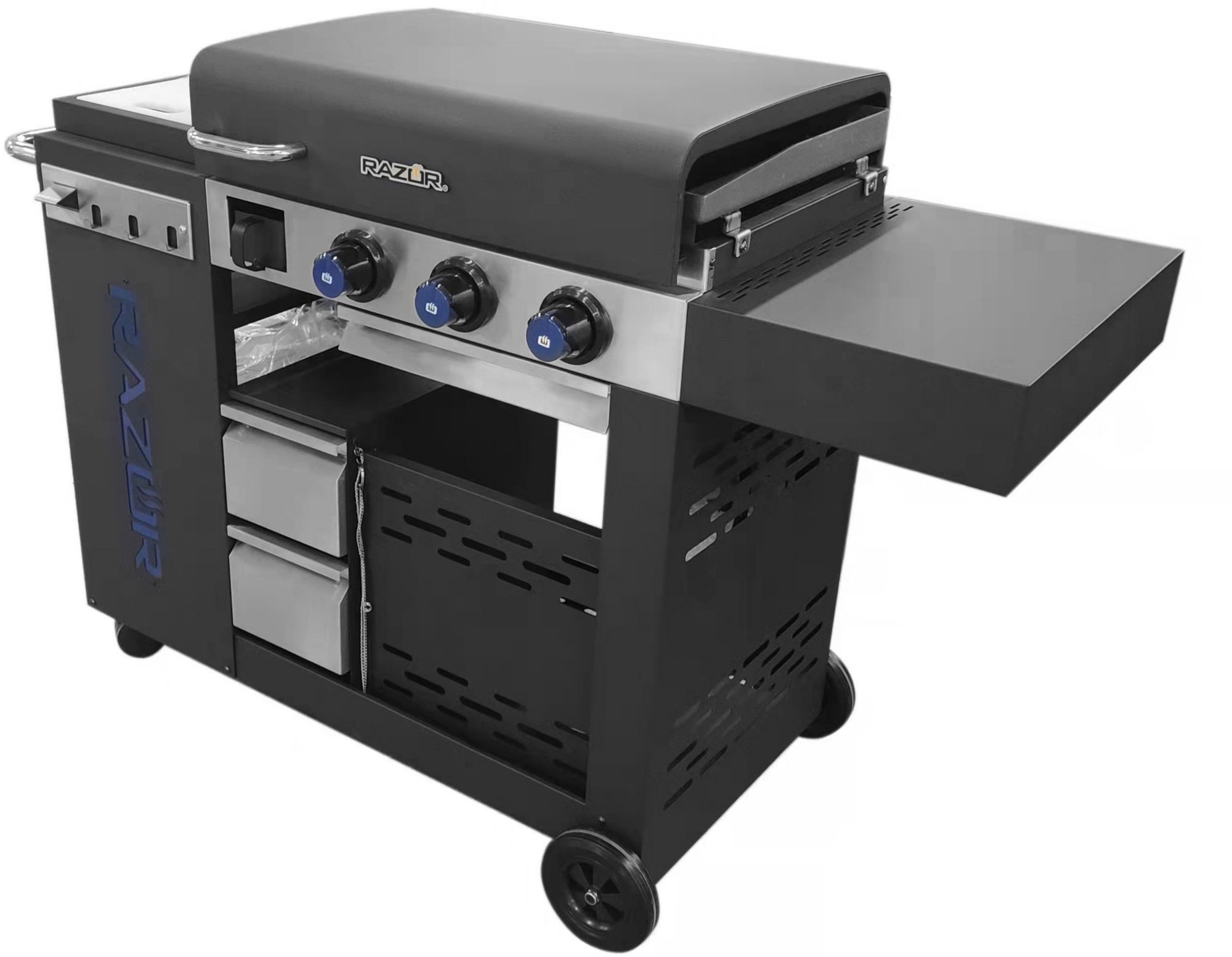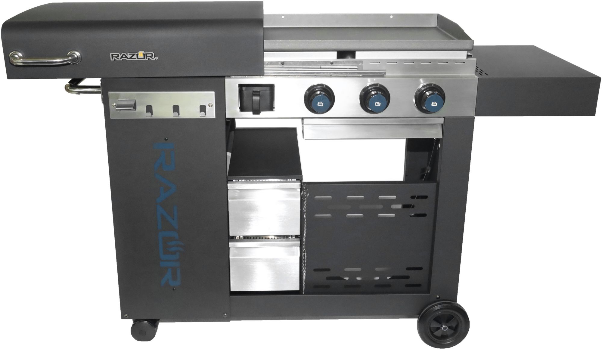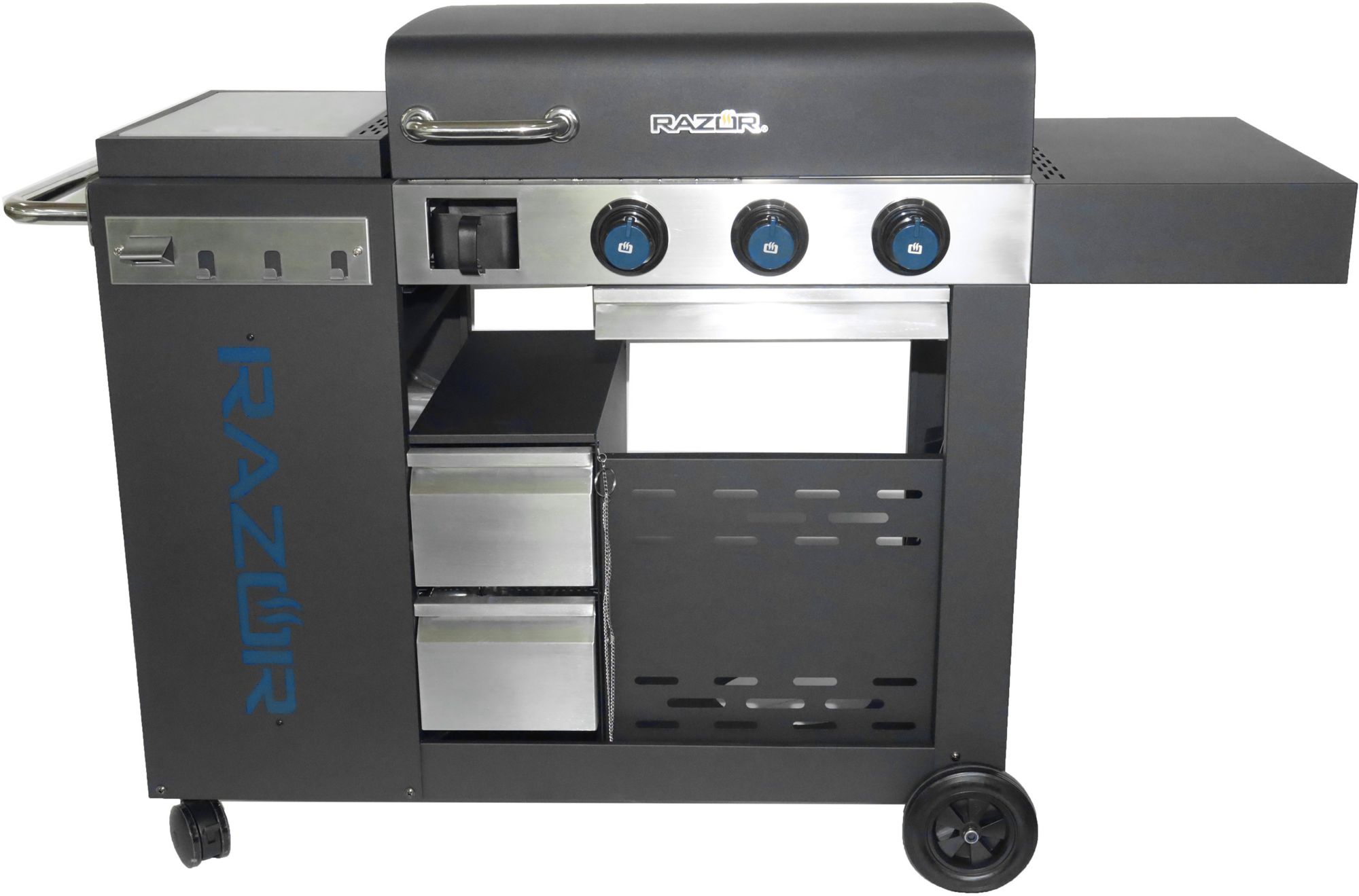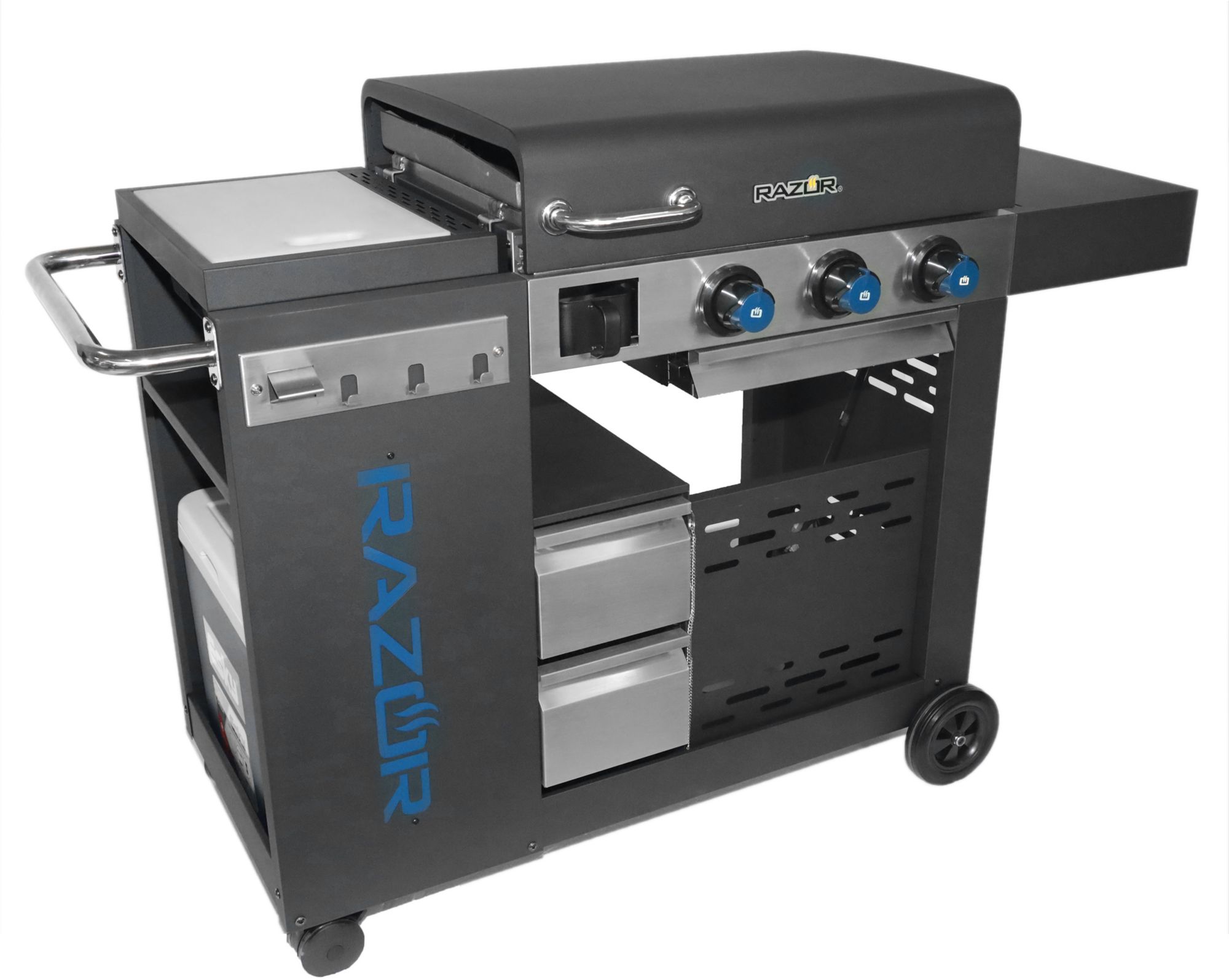 - 3 Burner Razor griddle outdoor kitchen offers plenty of room to cook all your favorite foods