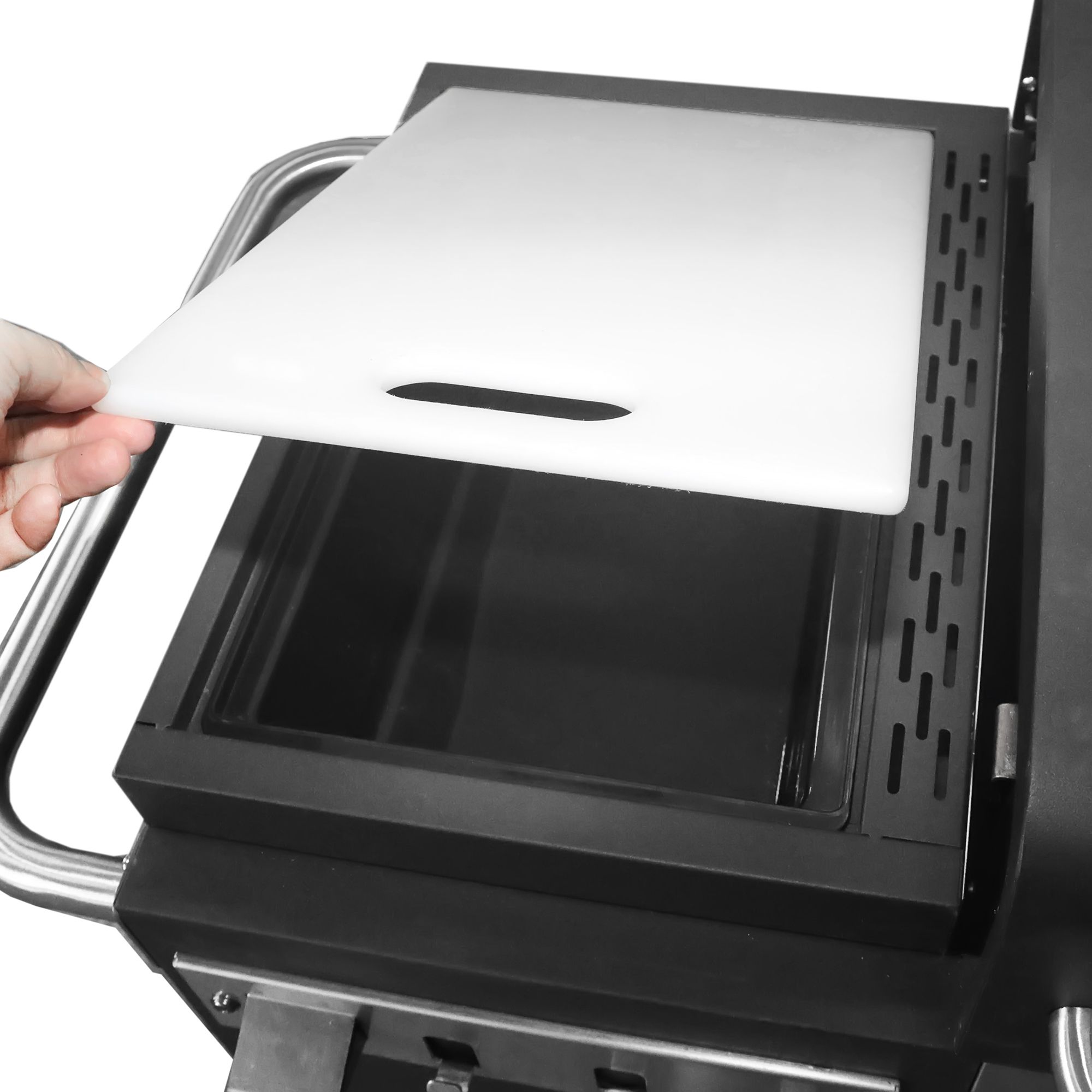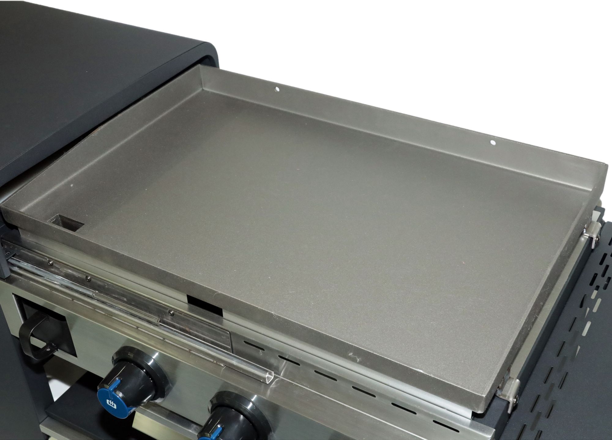 - Large capacity, 400 sq in pre-seasoned griddle