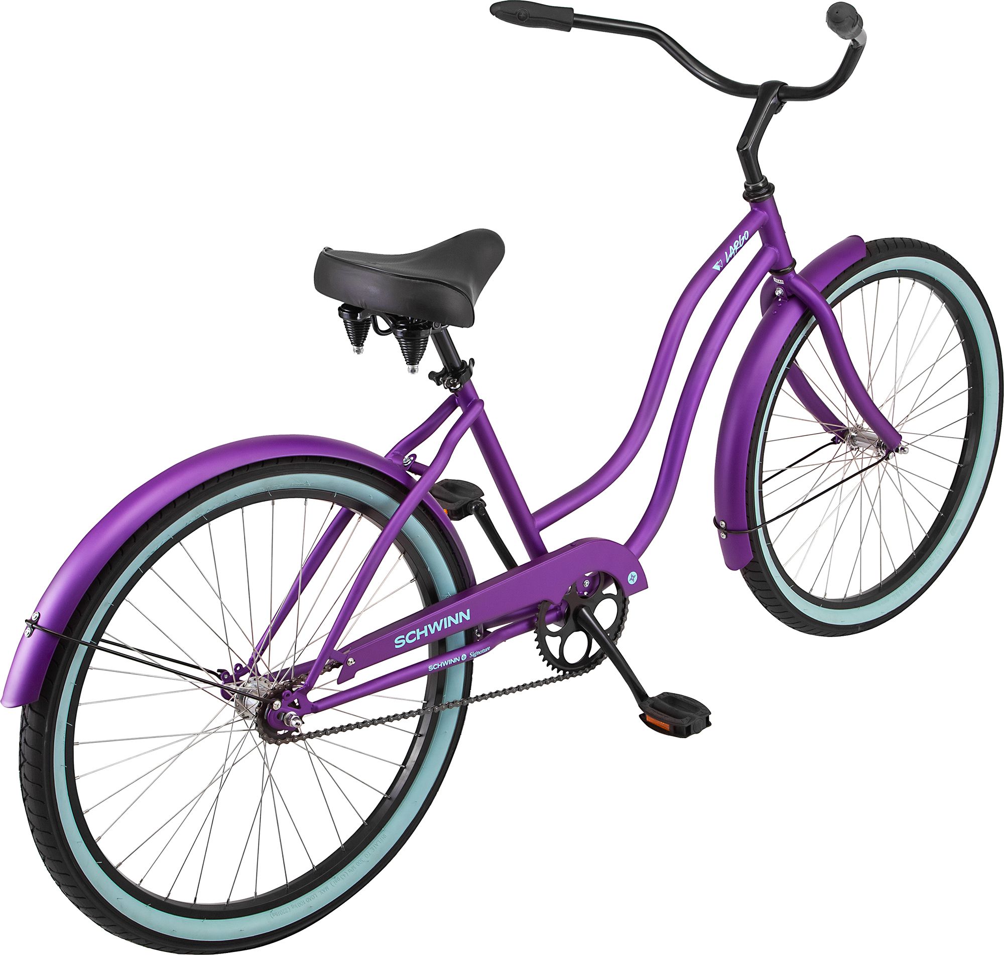 Go for a spin in style on the Schwinn Largo cruiser bike. The Largo features a classic Schwinn cruiser frame and fork with a vintage look that’s perfect for casual around the neighborhood. The single-speed drivetrain is simple to use, while the rear coaster brake provides intuitive stops. Plus, the Largo’s upright riding position and Schwinn quality cruiser spring saddle make this one of the most comfortable rides around.