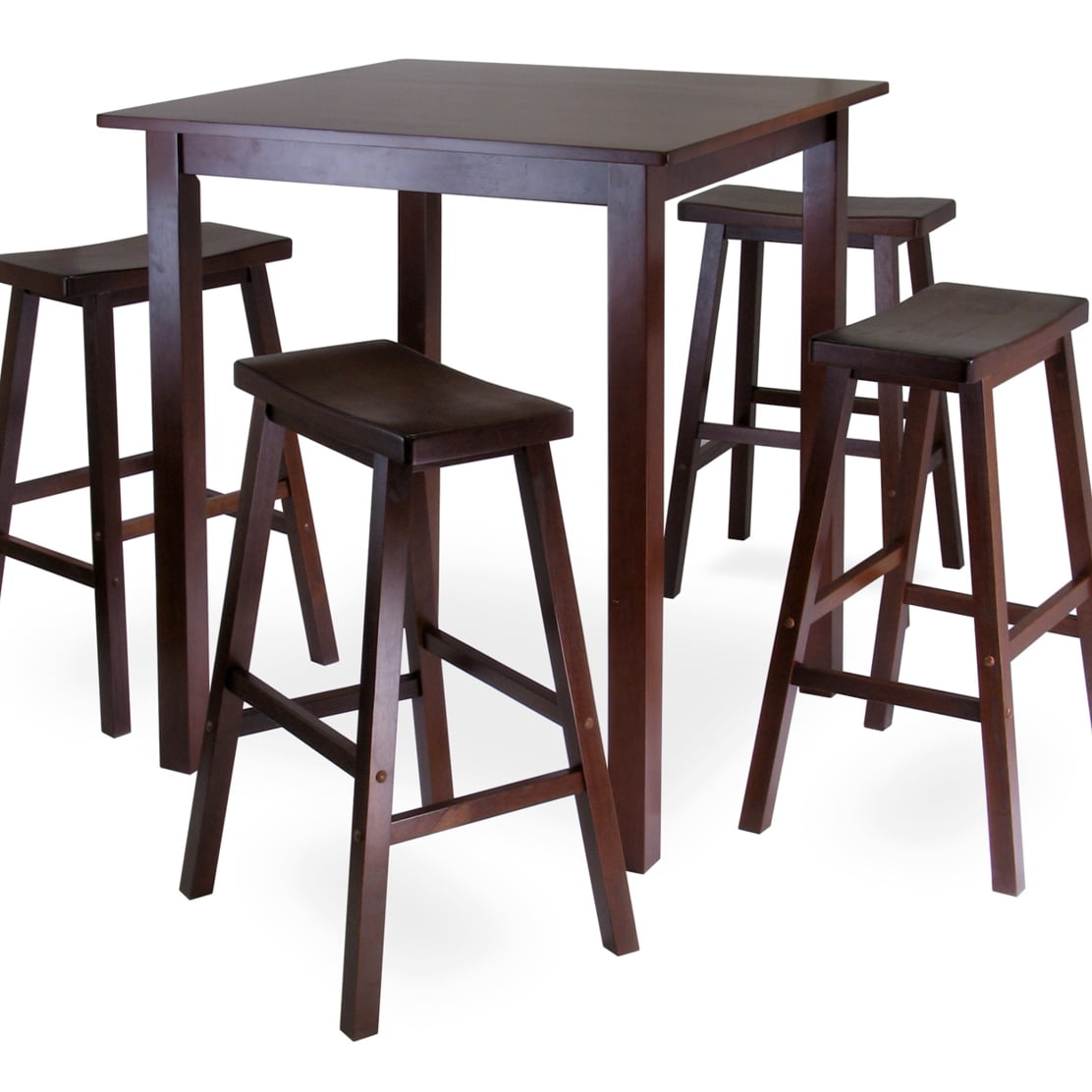 Winsome Wood Parkland 5-Pc High Dining Table with 4 Saddle Seat Bar Stools, Walnut