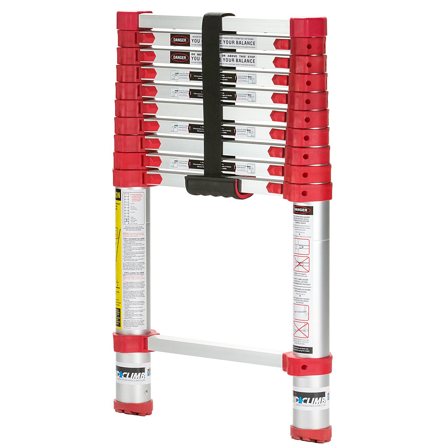 The Xtend+Climb Home Series 760P PLUS is a versatile telescoping ladder designed with homeowners and do-it-yourselfers in mind. The 760P PLUS opens to 10.5 ft. and retracts down to 30 in. The 760P PLUS is considered the medium size for the Home Series and has just enough height to get you to those hard to reach corners of the house while also being compact and light enough for anyone in the family to transport and store. No longer will your ladder be taking up too much space in your shed or garage. Like all of our Home Series telescoping ladders, the 760P PLUS is compact and easy to use with the strength, safety and durability to tackle projects around the home. It extends and locks by the foot so it’s only as tall as you need it and features double over molded feet for added durability and traction. Once your job is completed, just use the safety closure system to collapse the ladder rung-by-rung for compact storage.