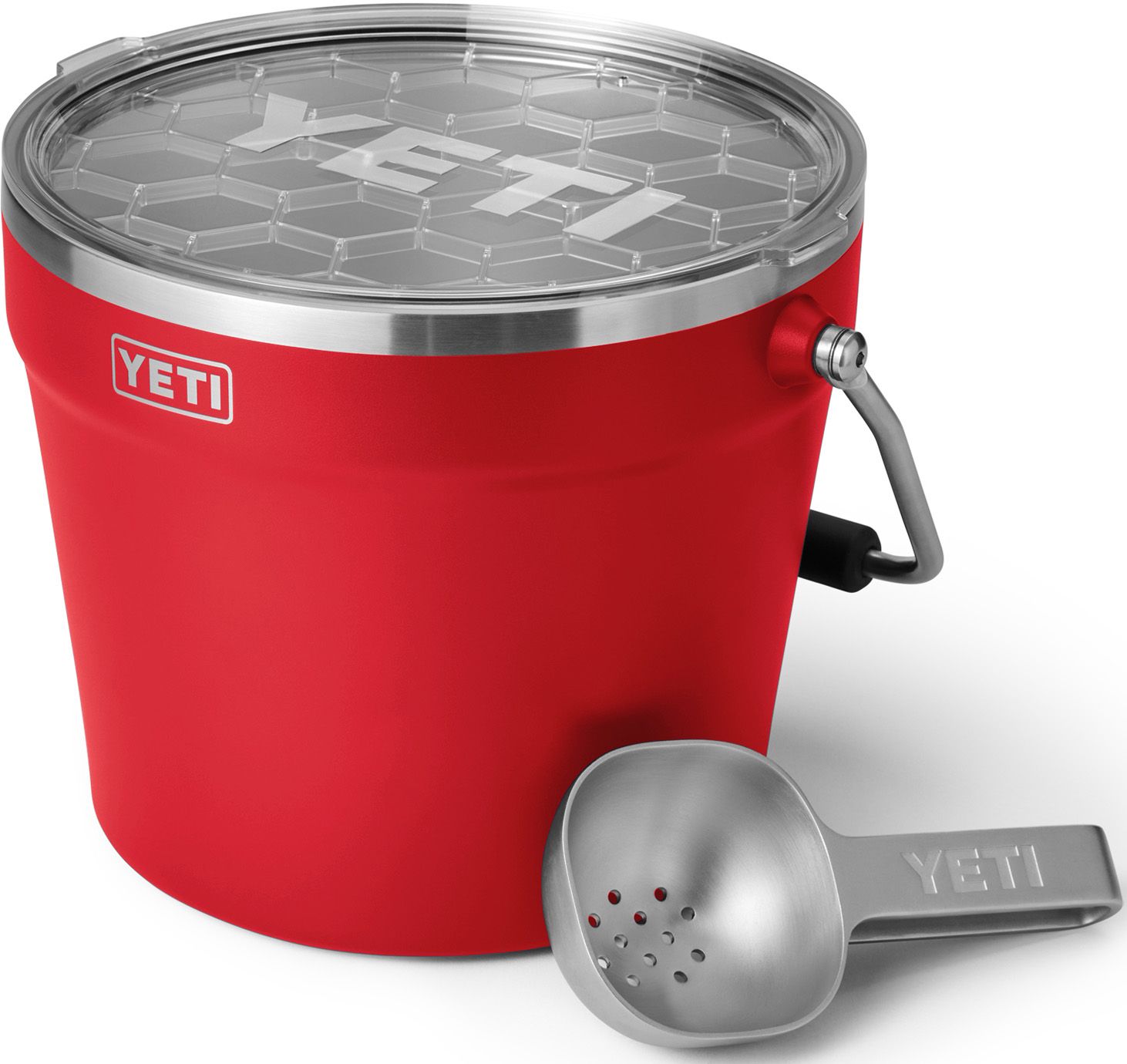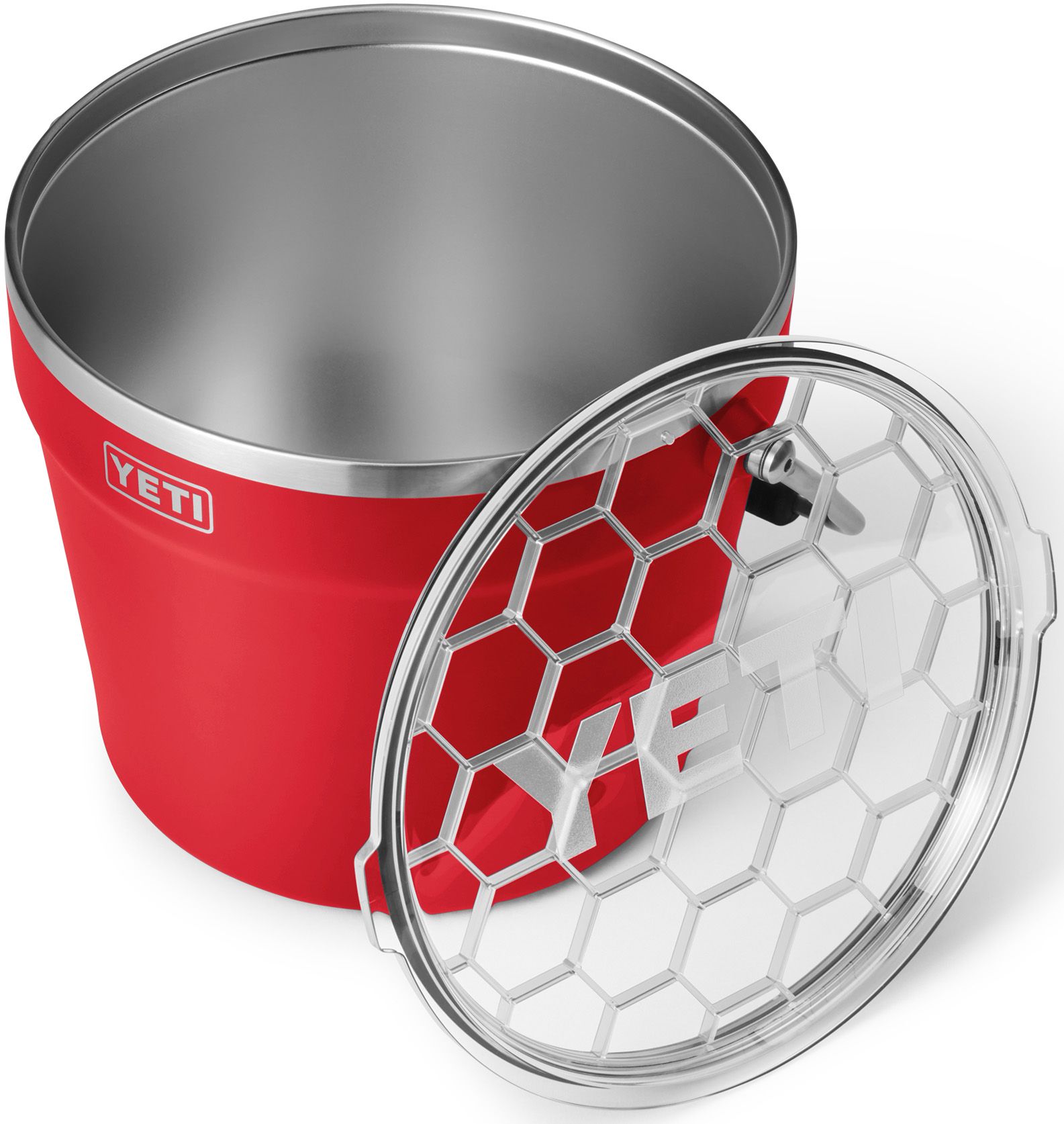 Pass around another round and bring the party to the wild. This durablestainless steel beverage bucket is part of the YETI® Rambler® Family. Its largecapacity and rotating handle make it easy to haul a six pack or three bottles of wine,and the bucket keeps drinks cold all night long thanks to its double-wall vacuum insulation. Built for easy use, it comes equipped with a BearFoot™ Non-Slip Ring toavoid unwanted slips, clanks, and scratches and is dishwasher safe – because no onewants more work. With the lid in place it makes a great ice bucket for happy hoursaround the fire and is stackable for easy storage when the lid is removed